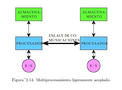 Grados de Acoplamiento en Multiprocesamiento: Ligeramente acoplados ->Los sistemas pueden funcionar independientemente y se comunican cuando sea necesario. |