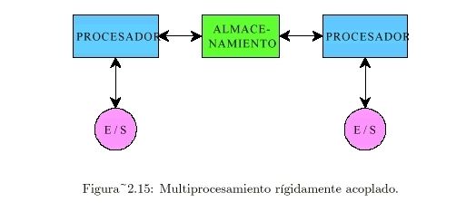 Grados de Acoplamiento en Multiprocesamiento: Rígidamente acoplados ->Utiliza un solo S.O. y un único almacenamiento compartido por varios procesadores. |