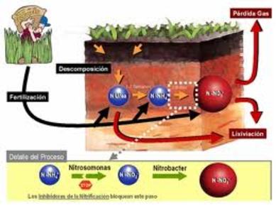 | Nitrificación: Consiste en la transformacion del amoniaco y del amonio en nitrato. Se dividen en dos procesos separados y consecutivos. EL amoniaco y el amonio son transofarmados en nitrito gracias a las bacterias nitrosantes, luego los nitritos se tranforman en nitrato gracias a las bacterias nitrifcantes. |