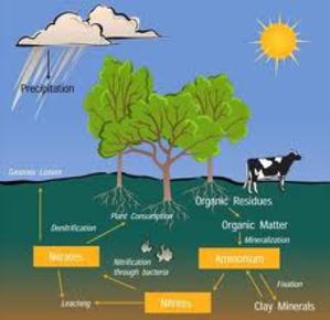 | nitrificacion:la mayor parte del nitrogeno del suelo proviene de la descompocicion de los seres vivos gracias a bacterias y hongos estos se alimentan de el y lo transforman en amoniaco o amonio. |