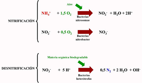 | nitrificacion consiste en transformar el amoniaco en nitrato esto se realiza en dos posesos el amoniaco es transformado a nitrito atraves de las bacterias el nitrito es transformado a nitrato por acion de otro tipo de bacterias |
