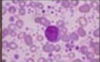 Eritroblasto basófilo/ Normoblasto basófilo/ Prorubicito | Tamaño: 10 - 15 micras La célula posee una forma redonda u ovalada. El núcleo posee una forma redonda, el tamaño disminuye, se puede observar nucleolo; relación 6:1. Citoplasma basófilo por presencia de ácidos nucleicos que sintetizan proteínas para captaciónn del hierro. |
