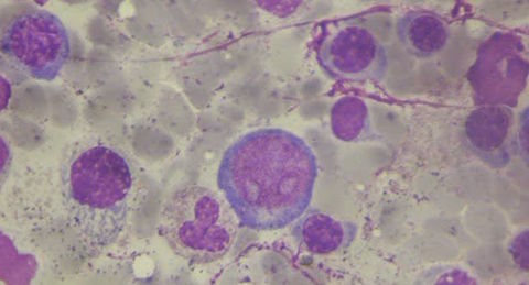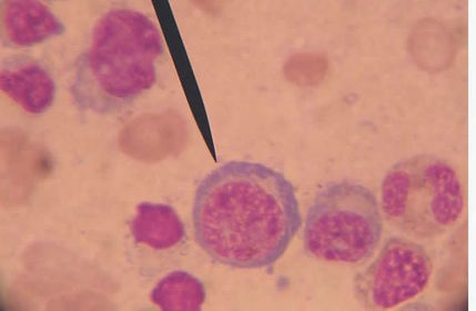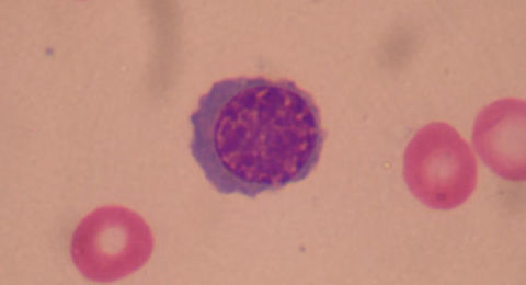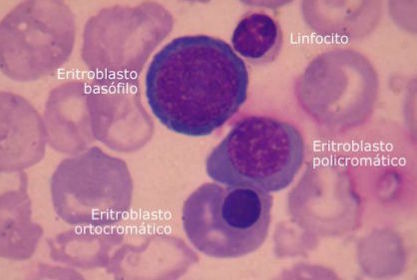 El citoplasma es más basófilo que en el proeritroblasto y el núcleo más pequeño. Normalmente se encuentra en la médula ósea. | |