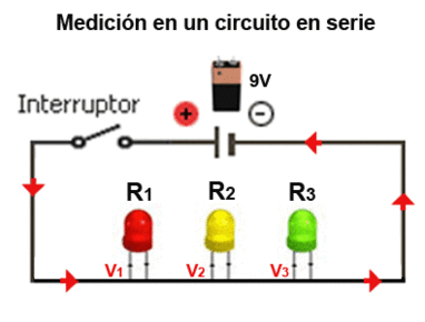 | Circuito en serie:el movimiento de las cargas eléctricas en un solo movimiento. |
