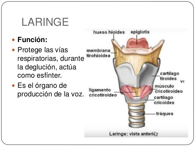 ¿Qué es la laringe? | Es donde se encuentran las cuerdas vocales que vibran con el paso del aire y permiten producir sonidos. En su entrada se localiza la epiglotis que es una válvula que se cierra cuando comemos o bebemos y se abre cuando respiramos. La laringe se comunica con la tráquea. |