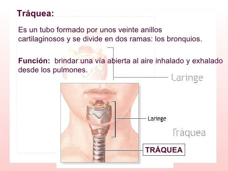 ¿Qué es la tráquea? | Es un conducto rígido y anillado que se ramifica en los bronquios. |