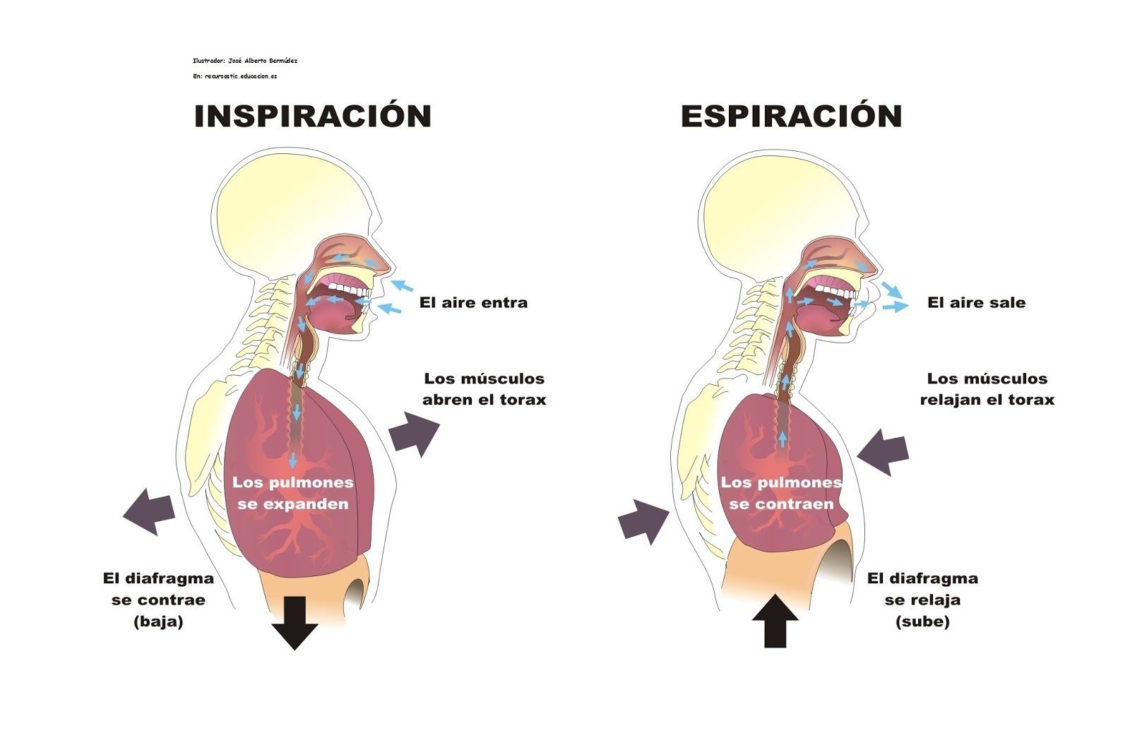 ¿Cuáles son los movimientos respiratorios? | La inspiración o entrada de aire a los pulmones y la espiración o salida de aire. |