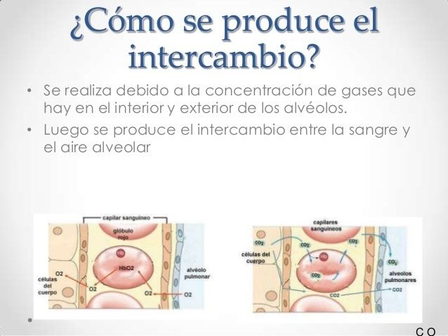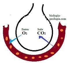 ¿En qué consiste el intercambio de gases? | La sangre recoge el dióxido de carbono que liberan las células y lo transporta hasta los alvéolos, desde donde es expulsado al exterior mediante la espiración. |