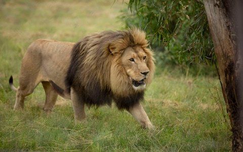 It's got round ears and whiskers. It's brown. It's got a big mane. It's the king of the jungle. | lion |