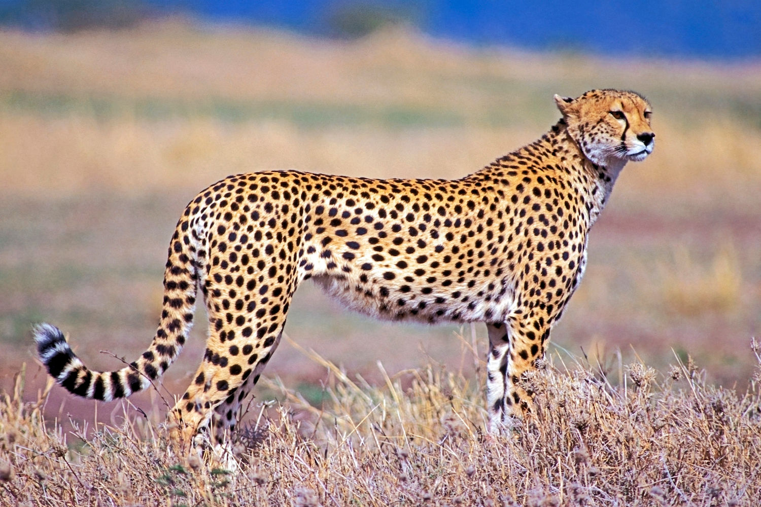 It's a big cat. It's got black, round spots. It's got long legs. It's the king of speed. It's the fastest land animals. | cheetah |