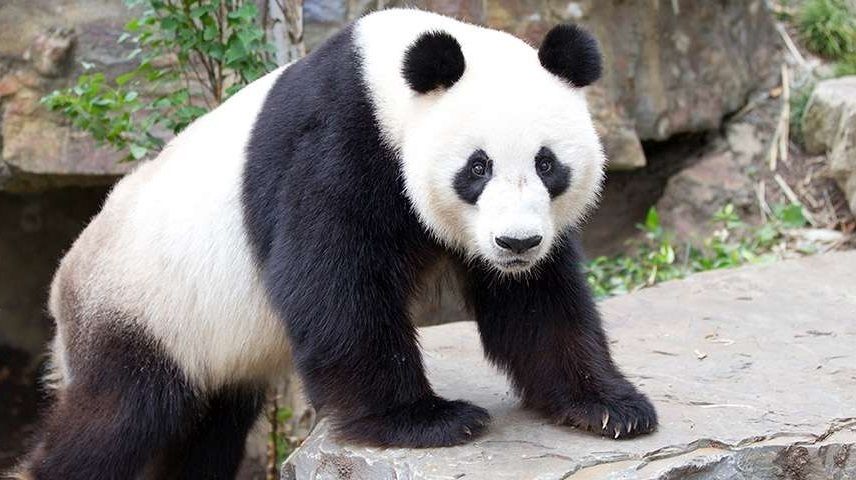 It's got small ears. It's got black and white fur. It eats bamboo. | panda |