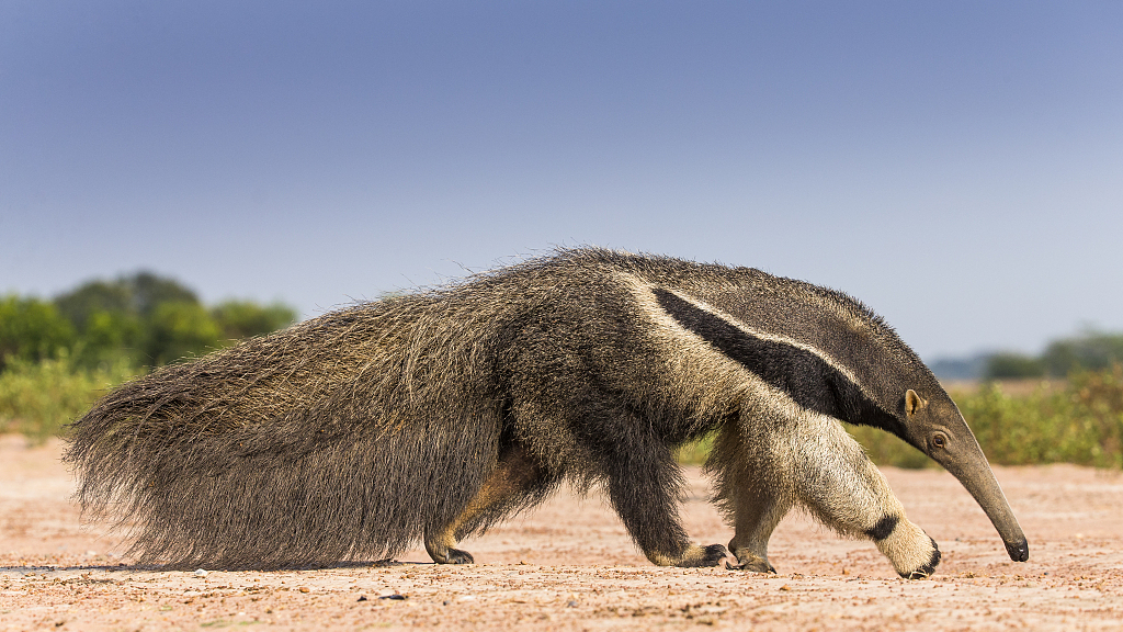It's got a long head and its snout looks like a tube. It hasn't got teeth. It eats ants and termites. | anteater |