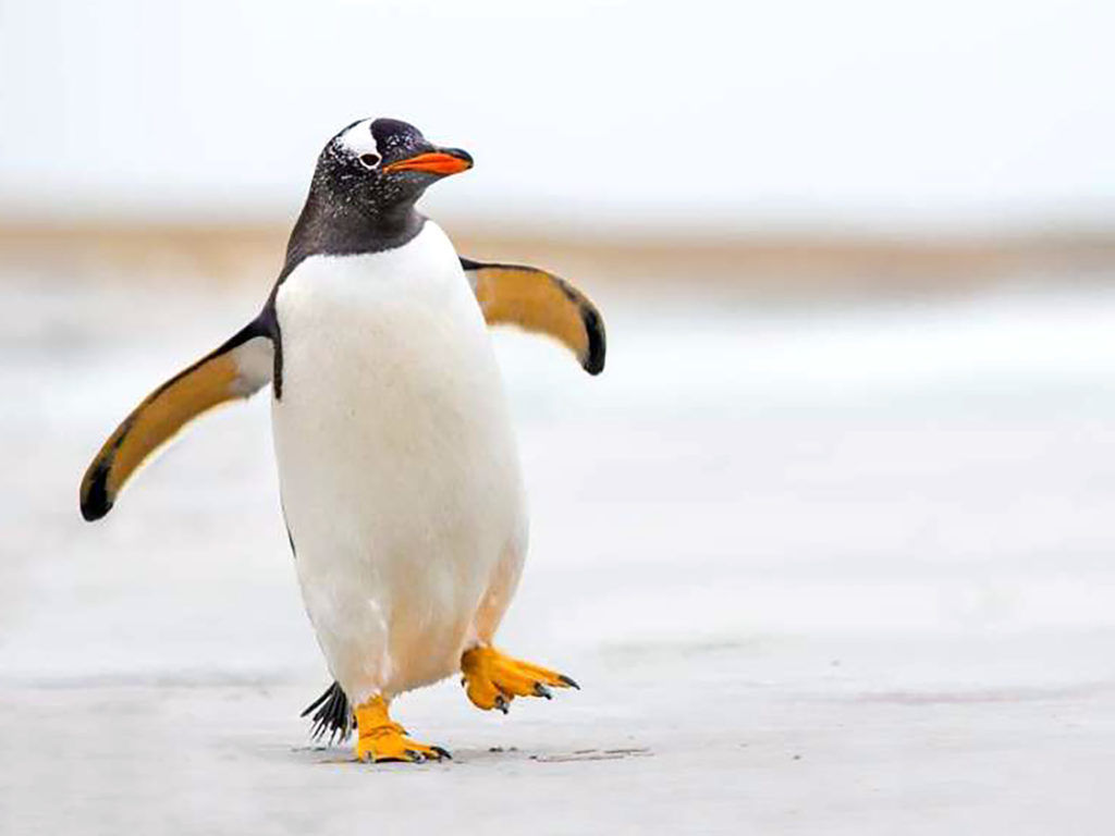 It's black and white. It's a bird, but it can't fly. It can swim. It lives in the Southern Hemisphere. | penguin |