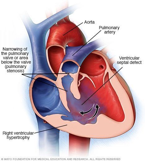 | ¿Con qué lesiones cardiácas se asocia la tetralogia de Fallot? | 1.valva pulmonar bicúspide y estenótica (50%) 2.comunicación intraatrial (30%) 3.persistencia del conducto arterioso (30%) 4.síndrome de Down (2.6%) |