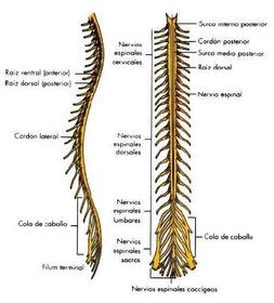 | Nervios Espinales y Raquídeos. Son motores-esqueléticos, inervan al sistema locomotor de todo el organismo menos de la cabeza, esta compuesto por 31 pares de nervios raquídeos. | sISTEMA NERVIOSO SOMATICO O VOLUNTARIO. Incluye todo el conjunto de neuronas que traen respuestas desde el sistema nervioso central hacia los músculos de control voluntario o músculos motores. |