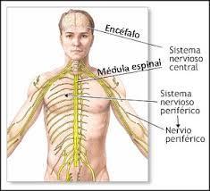 | Médula Espinal. se encarga de transmitir la información que llega desde los nervios, procedente de las distintas regiones corporales | Encéfalo. Masa nerviosa contenida dentro del cráneo, esta envuelta por los meninges y consta de 3 partes cerebro, cerebelo y bulbo raquídeo. |