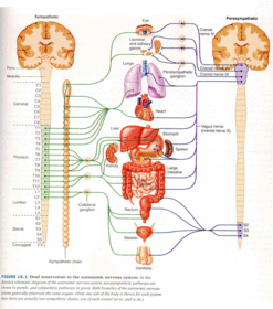 | SISTEMA NERVIOSO AUTONOMO O VEGETATIVO. se encarga de regulas las funciones internas del organismo con el objeto de mantener el equilibrio fisiológico, controla la mayor parte de la actividad involuntaria de los órganos y glándulas y se clasifica en: | SISTEMA NERVIOSO SIMPÁTICO. Su función es la de adecuar el organismo para reaccionar ante una emergencia, solo excita lo que es necesario para actuar ante la emergencia y a su vez inhibe los órganos que no son necesarios para reaccionar ante el peligro |