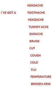 | I´ve got a headache and tummy ache | Tengo un dolor de cabeza y dolor de barriga |