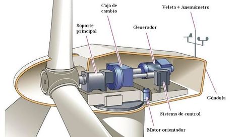 | HAIZE SORGAILUA | Haize sorgailua herrietatik urrun jartzen dira sortzen dituzten kontaminazio akustikoarengatik. Osagai batzuk ditu: -ANEMOMETROA: Haizearen abiadura neurtzen du, motoreak gelditu egiten da haize handia dagoenean, zihurtasun gailua da. - HAIZE ORRATZA: Haizearen norabidea ematen digu, eta funtzionamendua haizea zuzenean turbina palak mugitzen du. Palen mugimenduak turbina mugitzen du. |