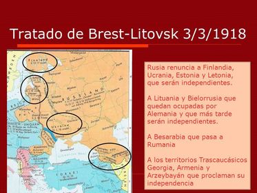 | ¿Qué es el Brest-Litovsk? | Fue un tratado de paz firmado el 3 de marzo de 1918 en la ciudad bielorrusa de Brest-Litovsk |