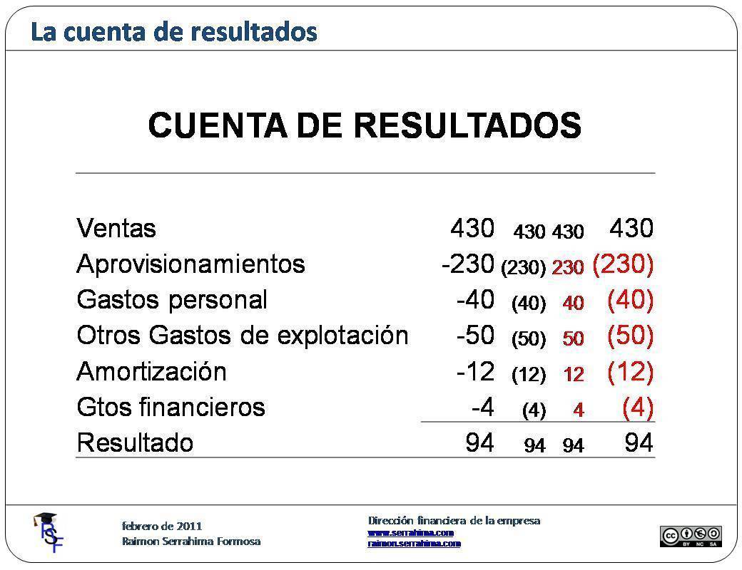 | CUENTA DE RESULTADOS Informa los ingresos de una empresa, los gastos y las ganancias o pérdidas. | |