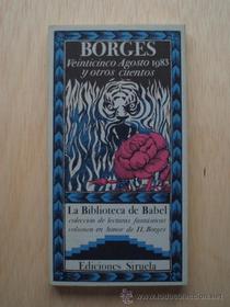 | 25 de Agosto, 1983, es la historia de Borges encontrándose con sí mismo, y que trata de la identidad, los sueños y juegos de ficciones. Se basa en el diálogo del hombre maduro con el hombre anciano, del hombre escritor con el hombre suicida, pero uno no sustituye al otro sino que coexisten en una misma habitación de hotel, cuyos elementos son mencionados con algunos detalles. Es un sueño en que el Borges anciano le hace ver al Borges joven la fecha y edad de su muerte (un día después de su cumpleaños). | |