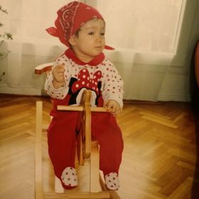 Laureen lleva puesto un body rojo y blanco de manga larga con puntos rojos y una ratita dibujada en el centro. Tiene puntos rojos sobre blanco en los pies. En la parte superior, el cuello es rojo. En la cabeza lleva un pañuelo rojo con lineas negras y blancas. | LAUREEN esta disfrazada de MINNIE |