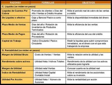| RAZONES FINANCIERAS: Son indicadores utilizados en el mundo de las finanzas para medir o cuantificar la realidad económica y financiera de una empresa y su capacidad para asumir las diferentes obligaciones según su objeto social. | |