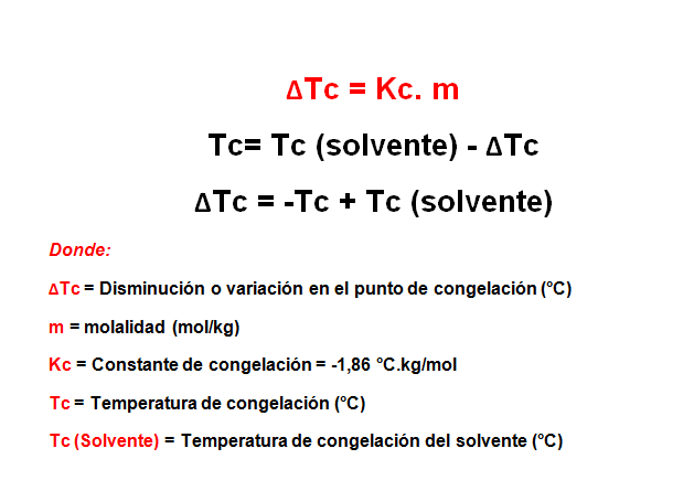 | Este efecto es el resultado de los factores: la disminución del número de moléculas del disolvente en la superficie libre. | -Descenso del punto de congelación: Cuando se añade soluto a un solvente puro, este impide la solidificación a la temperatura característica. |
