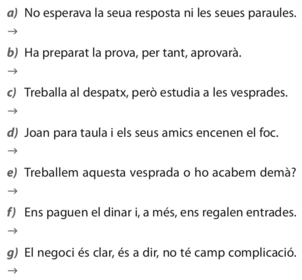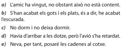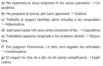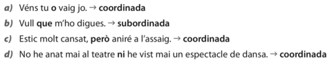 | Activitat 1 | Assenyala els nexes de les coordinades següents i digues de quin tipus són |
