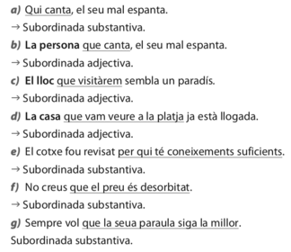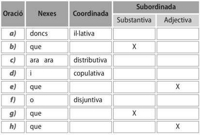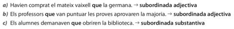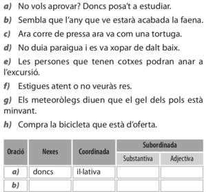 | Activitat 3 | De les subordinades següents assenyala el nexe i digues si és subordinada substantiva o adjectiva |