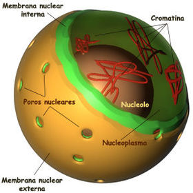 | Núcleo y nucléolo celular. El núcleo es el centro de control. Regula todas las funciones y la división celular, pues contiene toda la información necesaria para esta importante función. Mientras que el nucléolo forma los ribosomas y el ARNr (Ácido RiboNucleico ribosomal) | |