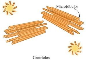 | Centriolos Estos organelos formados por microtúbulos se activan exclusivamente durante la división celular para formar el huso mitótico el cual permite que los cromosomas se organicen. |