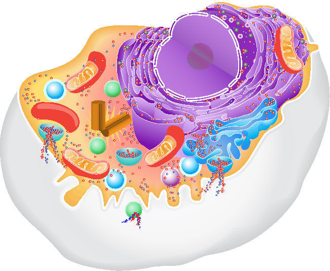 | Citoplasma Es un medio acuoso y viscoso, en donde están disueltas muchas sustancias alimenticias, es el medio donde se desarrollan las reacciones químicas que realiza la célula y sirve de contenedor de los organelos. | Los ribosomas, realizan la síntesis de proteínas, dirigidos por el núcleo. Se encuentran libres en el citoplasma o adheridos a las paredes del retículo endoplasmático. (R.E.P.) |
