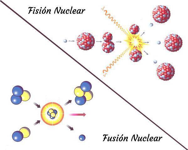 Semejanza y diferencia entre Fisión Nuclear y Fusión Nuclear. | La energía que se encuentra almacenada en el núcleo de un átomo es liberada por medio de reacciones nucleares. La fisión nuclear es la separación de un núcleo pesado en un núcleos más pequeños, por otro lado la fusión nuclear es la combinación de núcleos para crear uno más grande y pesado. |