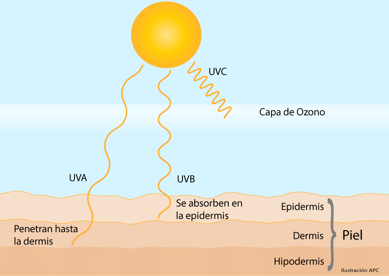 ¿Qué es la radiación ultravioleta y como afecta al ser humano? | Rayos invisibles que forman parte de la energía que viene del sol, puede llegar en forma de radiaciones UVA (arrugas o alergias) y UVB (bronceado). Por un exceso de radiaciones ultravioletas en la piel puede causar: envejecimiento prematuro, causar melanoma y otros tipos de cáncer de piel. |