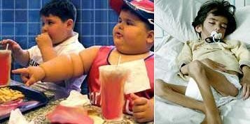 | Consecuencias de una dieta desequilibrada Consumir pocos o demasiados alimentos y de forma desbalanceada, tiene consecuencias que pueden ser muy graves: por un lado si faltan algunos nutrimentos en el organismo, hay desnutrición, que es muy grave y frecuente en niños de todos los ámbitos sociales, y por otro si se comen cantidades excesivas se puede desarrollar obesidad. | |