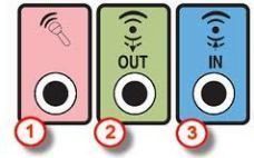 | PUERTOS DE AUDIO: 1. ENTRADA DE MICRÓFONO 2. SALIDA DE ALTAVOCES 3. ENTRADA DE LINEA ESTÉREO |