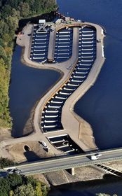 | Según su Aplicación | Presa de derivación en el río Mosa: La bocatoma está en la margen derecha del río. La estructura que atraviesa el río sirve para crear un pequeño represa-miento para garantizar el funcionamiento de la bocatoma. Presas filtrantes o diques de retención: Son aquellas que tienen la función de retener sólidos, desde material fino, hasta rocas de gran tamaño, transportadas por torrentes en áreas montañosas, permitiendo sin embargo el paso del agua. |