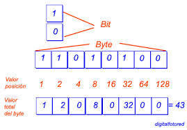 | bits Bit es el acrimonia Binar digital bitinio Un bit es un dígito del sistema de numeración binario. | byte Byte (B)1 2 (pronunciada [bit] o ['bite]) es una unidad de información utilizada como un múltiplo del bit. Generalmente equivale a 8 bits,3 4 5 6 7 8 9 10 por lo que en español se le denomina octeto |