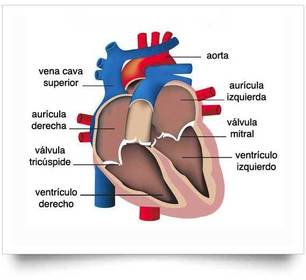 | Organizacion | Esta dividido en cuatro cámaras o cavidades; dos superiores y dos inferiores. Superior: - Aurícula derecha - Aurícula Izquierda. Inferior: - Ventrículo derecho -Ventrículo izquierdo. |