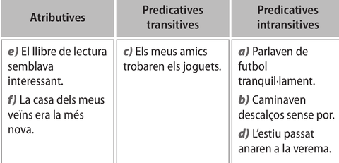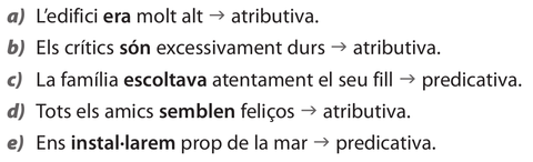 | Activitat 1 | Encercla el verb de les oracions següents i assenyala si són atributives o predicatives |