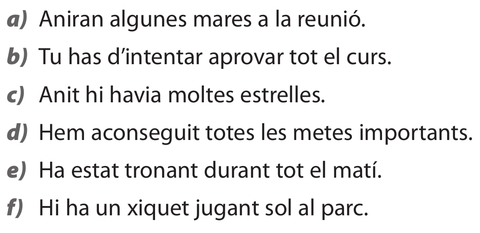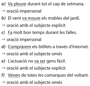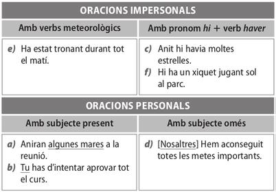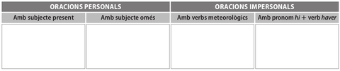 | Activitat 6 | Subratlla el verb de les oracions següents. Després, indica si tenen un subjecte explícit, un subjecte omés o si són impersonals |