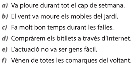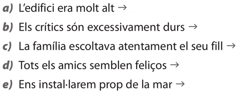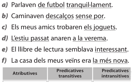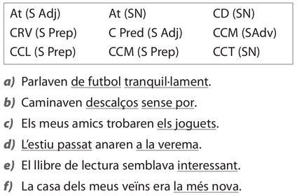 | Activitat 3 | Aquestes oracions han perdut les funcions dels sintagmes subratllats: col·loca’ls |