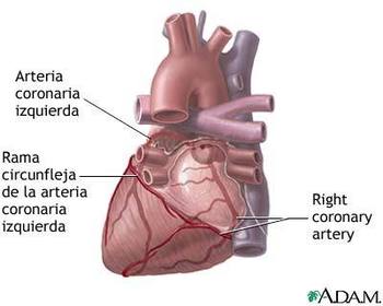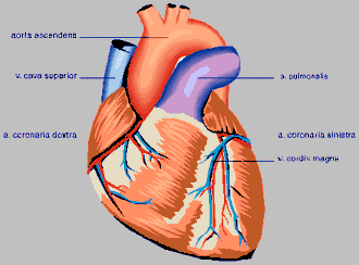 | Coronaria Izquierda: nace de la aorta y termina en el surco interarticular. Da numerosas ramas. | Coronaria Derecha: es más voluminosa que la anterior y nace de la parte media de la válvula sigmoidea derecha. En su terminación se anastomosa con la coronaria izquierda. |