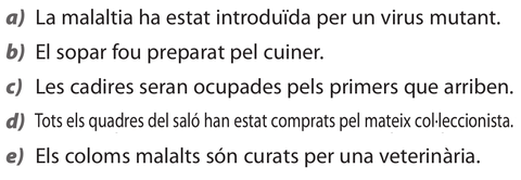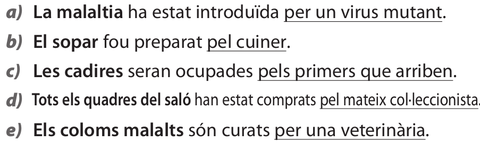 | Activitat 1 | Subratlla el complement agent i encercla el subjecte gramatical o pacient de les oracions següents |