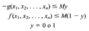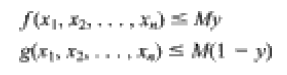 | Restricción si . . . entonces | Si una restricción f(x1, x2,…,xn) >0 se satisface entonces la restricción g(x1, x2, …,xn) >=0 se debe satisfacer en tanto que sino se satisface la primera entonces la segunda se podría satisfacer o no. |