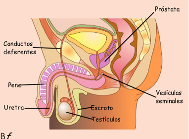 | Òrganos Externos Masculinos | Escroto: bolsa que contiene los testiculos. Pene: òrgano que conduce los espermatozoides al exterior del cuerpo. |