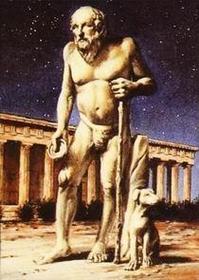 | Los Cinicos De aquí parten los términos cínico y cinismo que se utilizan en el sentido de la falta de sensibilidad ante el sufrimiento de los demás. Diciendo que el ser humano no tenía que preocuparse por salud porque nisiquiera el sufrimiento y la muerte debian dar lugar a la preocupación ni propia ni de los demás. Uno de sus mayores exponentes Diógenes discipulo de Antístenes pensaba que se tenía todo lo que se deseaba media vez la persona sea más rica y mas feliz emocionalmente. Por lo que Antístenes en Atenas enseño que la verdera felicidad no depende de cosas externas tales como el lujo o la buena salud; ya que si sea consegido no puede perderse. Esto se basa también en las experimencias de Sócrates las cuales nos dicen que actualmente no es necesario tener todas la cosas materiales para ser feliz. | "No es necesario tenerlo todo para ser feliz" |