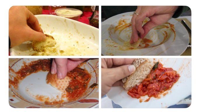 | 14. El pan debe tomarse únicamente con las manos, no se debe perforar con cuchillo o tenedor. | |